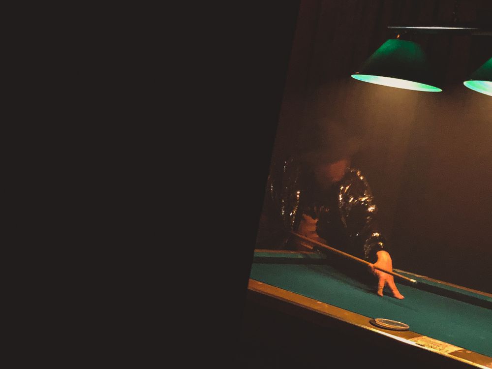 A lone pool player on Halloween night