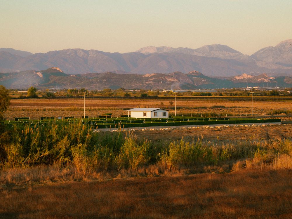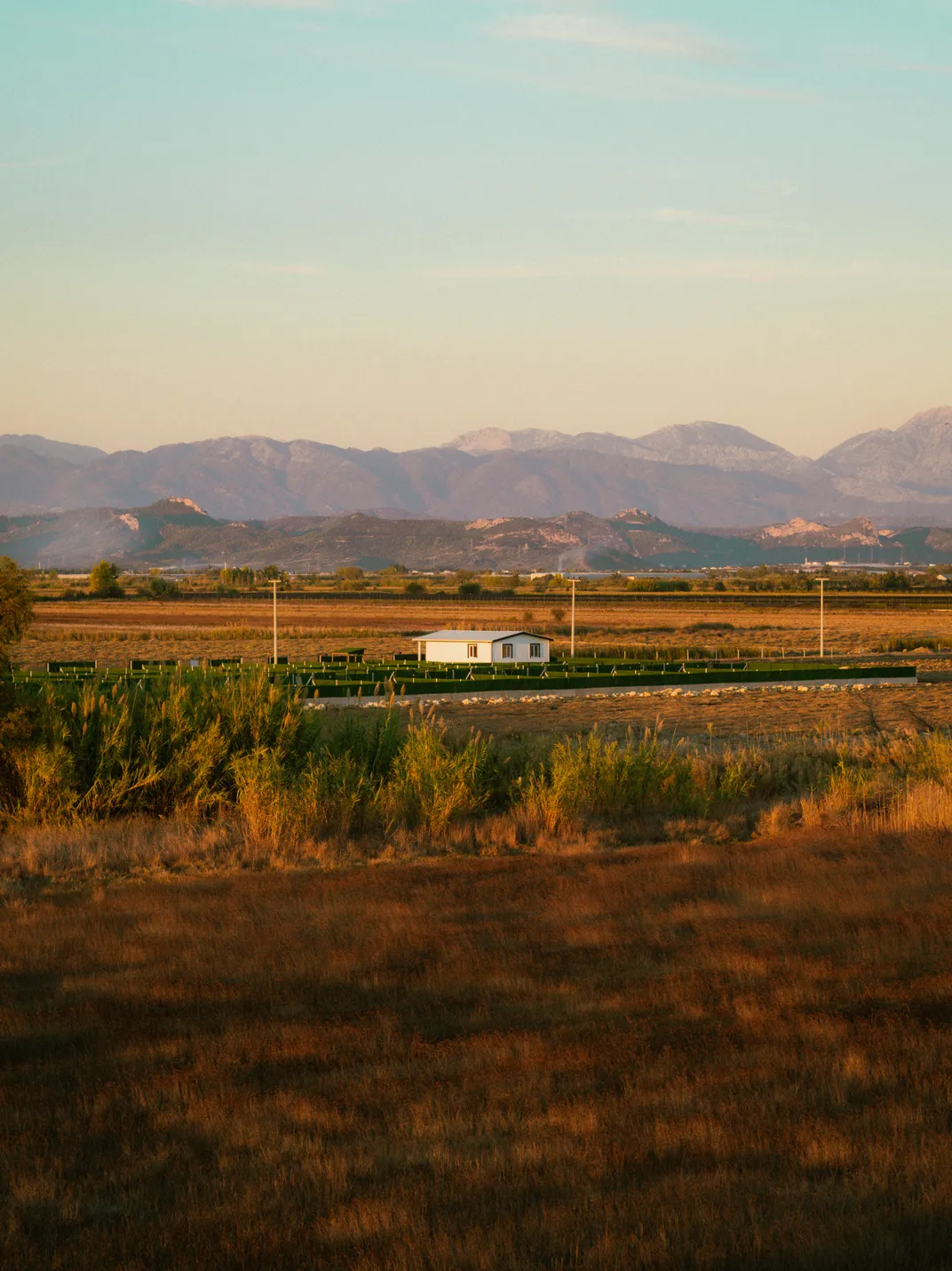 From my balcony, there is a wonderful view of the field. One day, a small house suddenly appeared in the middle of it, standing beautifully alone in the steppe with the mountains in the background.