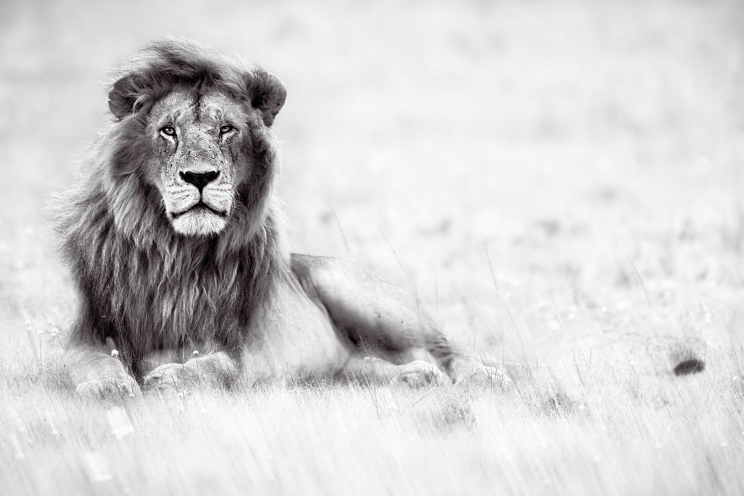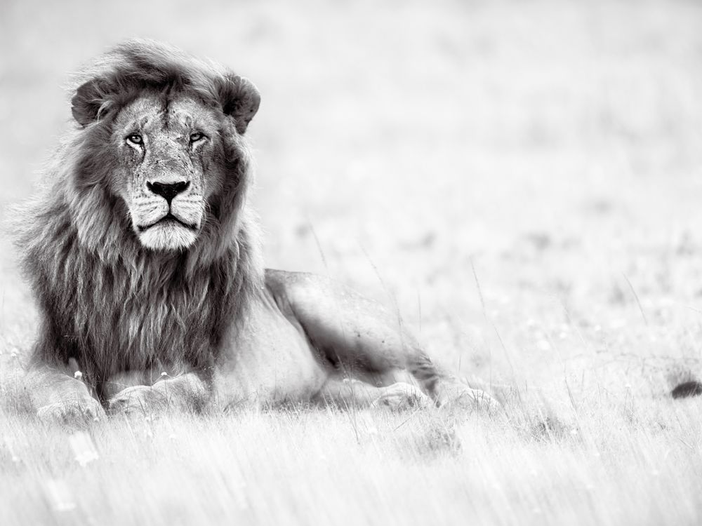 A full-grown male lion with a flowing mane is the star among stars in Africa. This particular lion was striking looking and sat in a regal pose. The strong breeze meant that its mane was flowing. To add to the matinée idol effect, I added some in-camera blur.