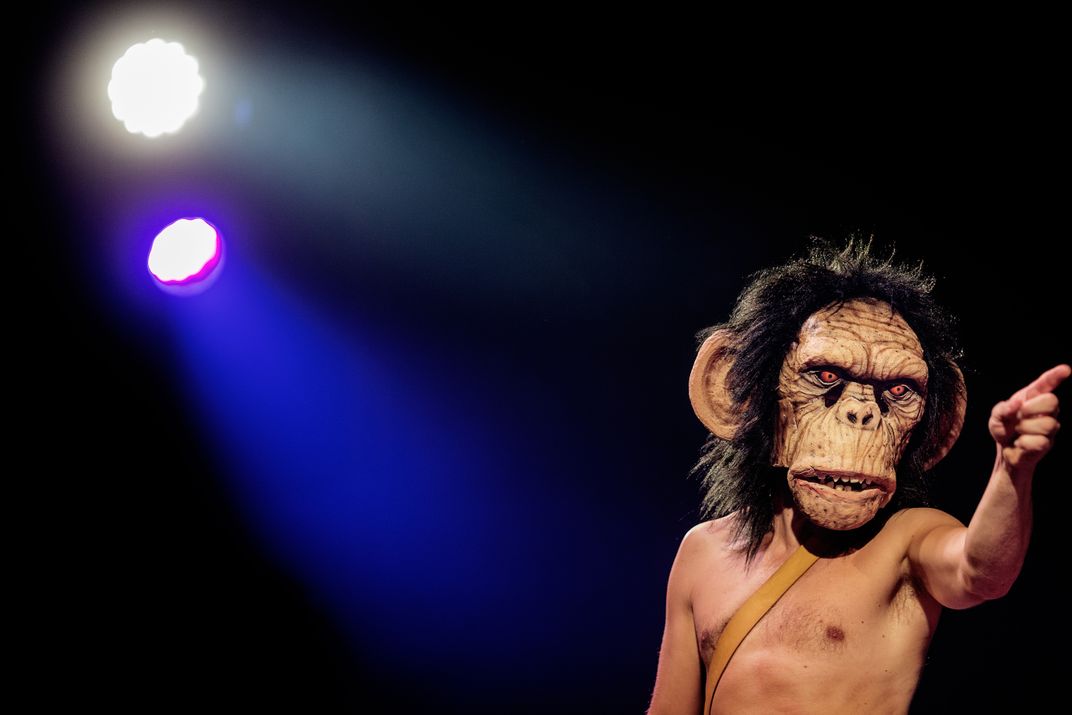 A man in a monkey mask.