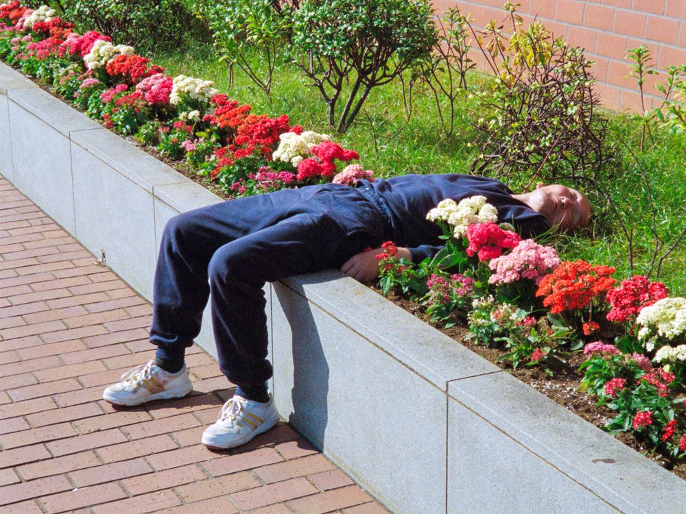 Captured on 35mm Kodak Portra 400 in Japan, this image shows a man lying in a flower bed, surrounded by color and calm. After checking he was safe and simply resting, I photographed the moment — a quiet glimpse of humanity amid the city’s movement.