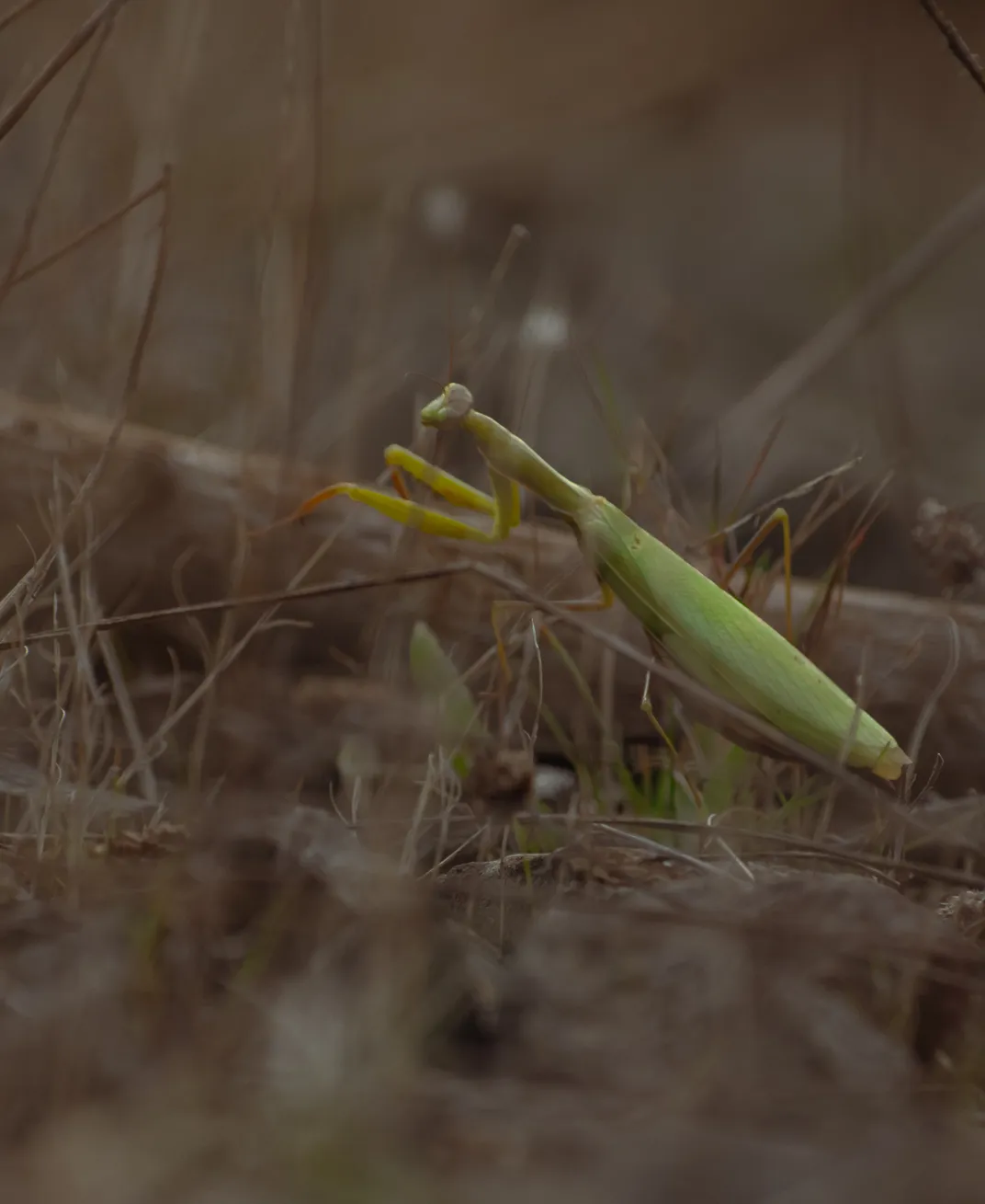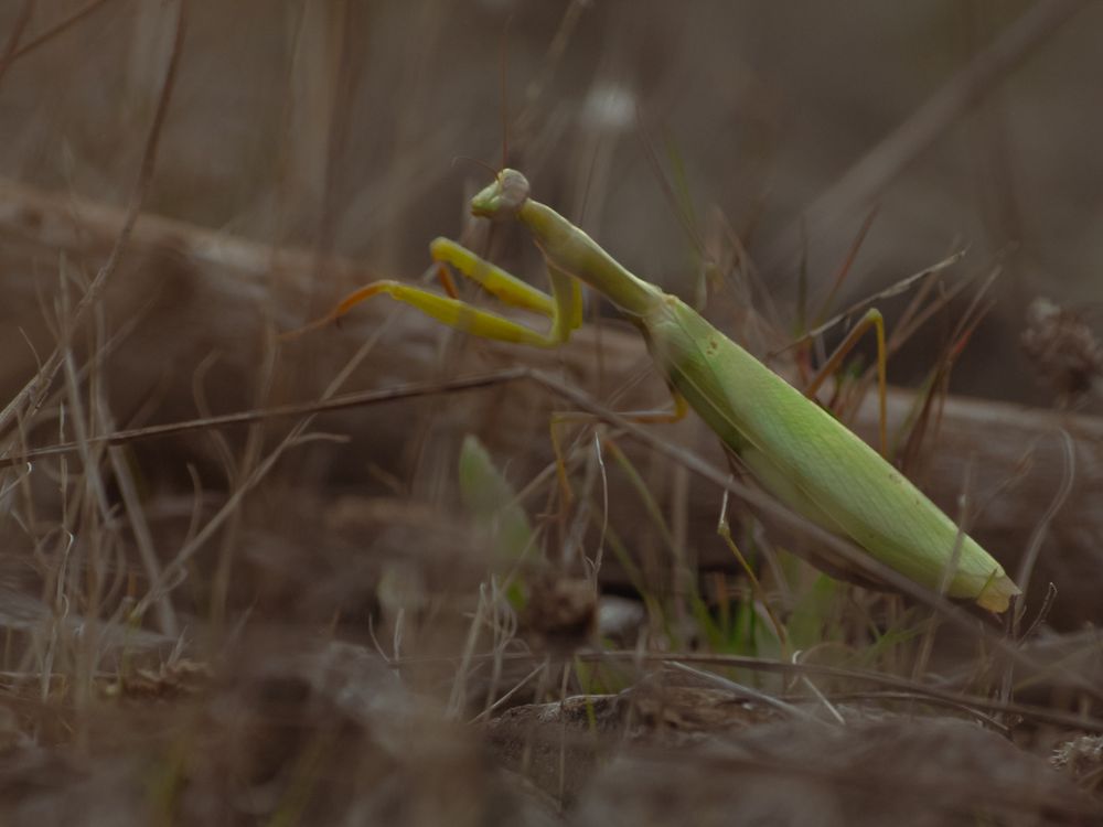 Hiking through the brush and I come across a Praying mantis on its journey.