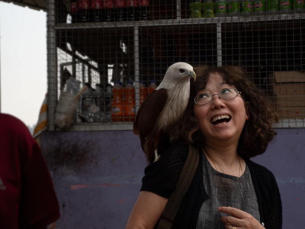 On a riverside in Kerala, an eagle rests on her shoulder. She breaks into pure, childlike delight, as if reminded of a joy that had always been waiting just beneath the surface.