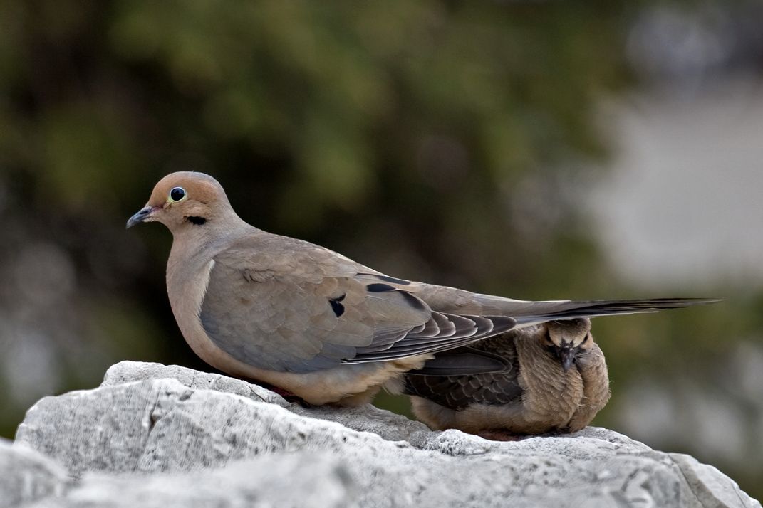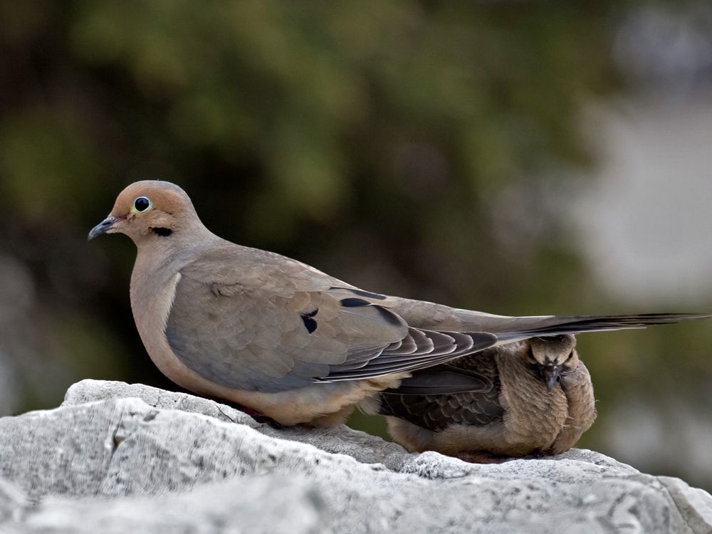 A momma dove protecting her child, she didn't budge as I slowly became only 6 feet away from them.
