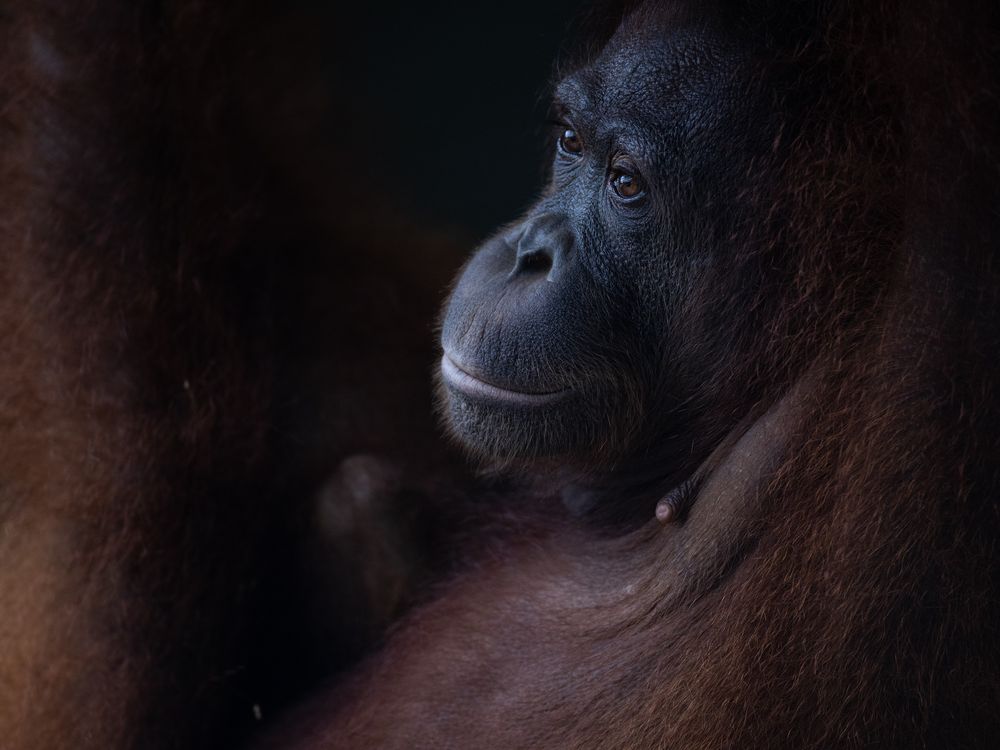 The eyes of an Orangutan reveal something behind them, a sort of complexity similar to our own. But these eyes have likely seen far more violence and persecution than many of us, as their home is being destroyed to clear land for palm oil plantations. Mother's, like this one, are often killed, and their babies are then sold into the illegal pet trade.