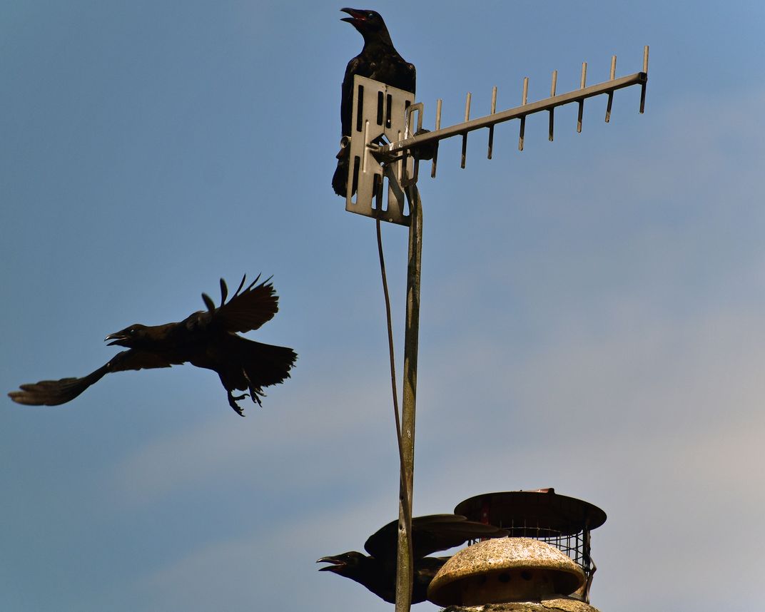 I love this cheeky shot of these squawking Crows captured in Bakewell, Derbyshire, arguing over who sits on the TV aerial.