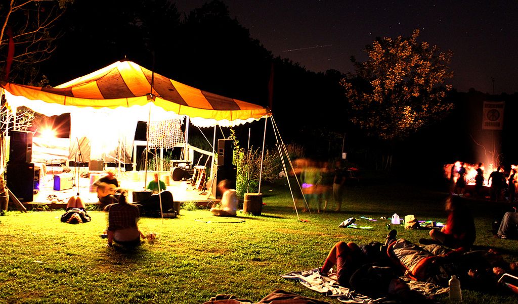 A nighttime concert and camping.