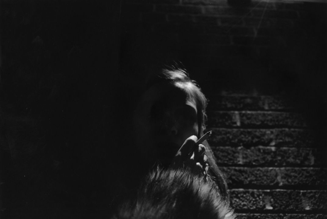 A photograph of my friend smoking outside