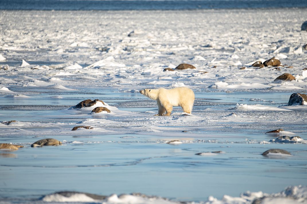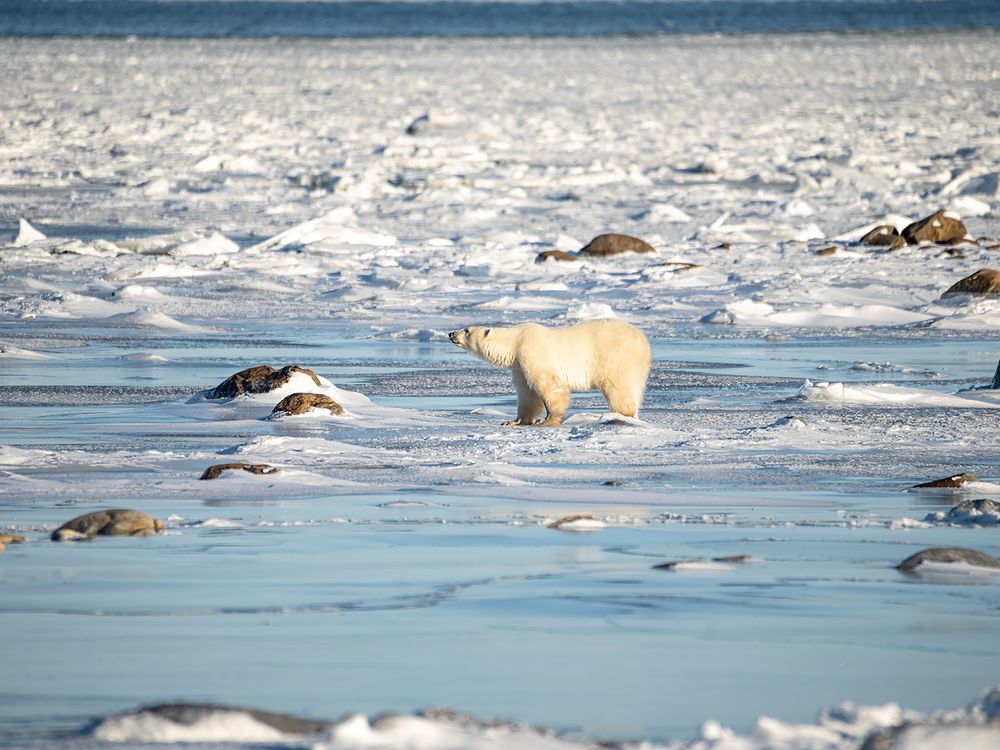 A polar bear challenging the Hudson Bay ice field.