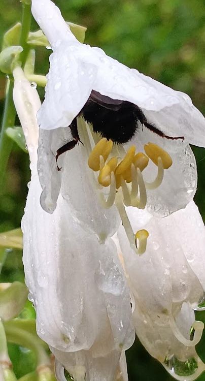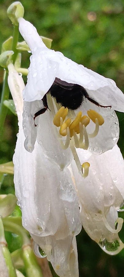 a bumblebee is enjoying the nectar of one of my flowers caught