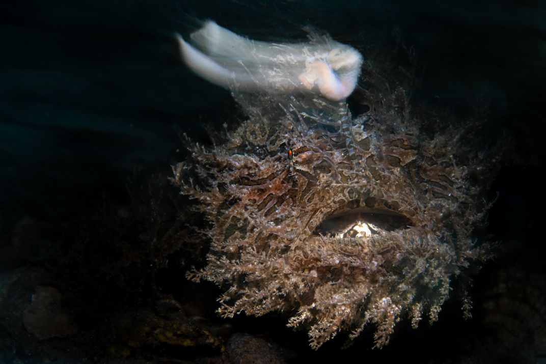 A Scaber's Frogfish fishing with its built in Lure