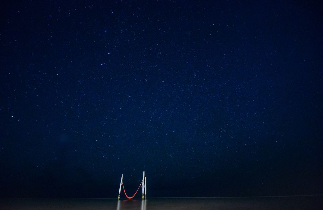 In Holbox, Mexico, there's this hammock at the edge of the sea, the sea is so shallow for several feet, at night it's surrounded by a sea of stars and a real sea