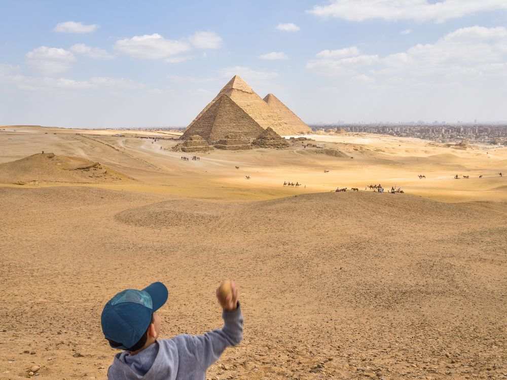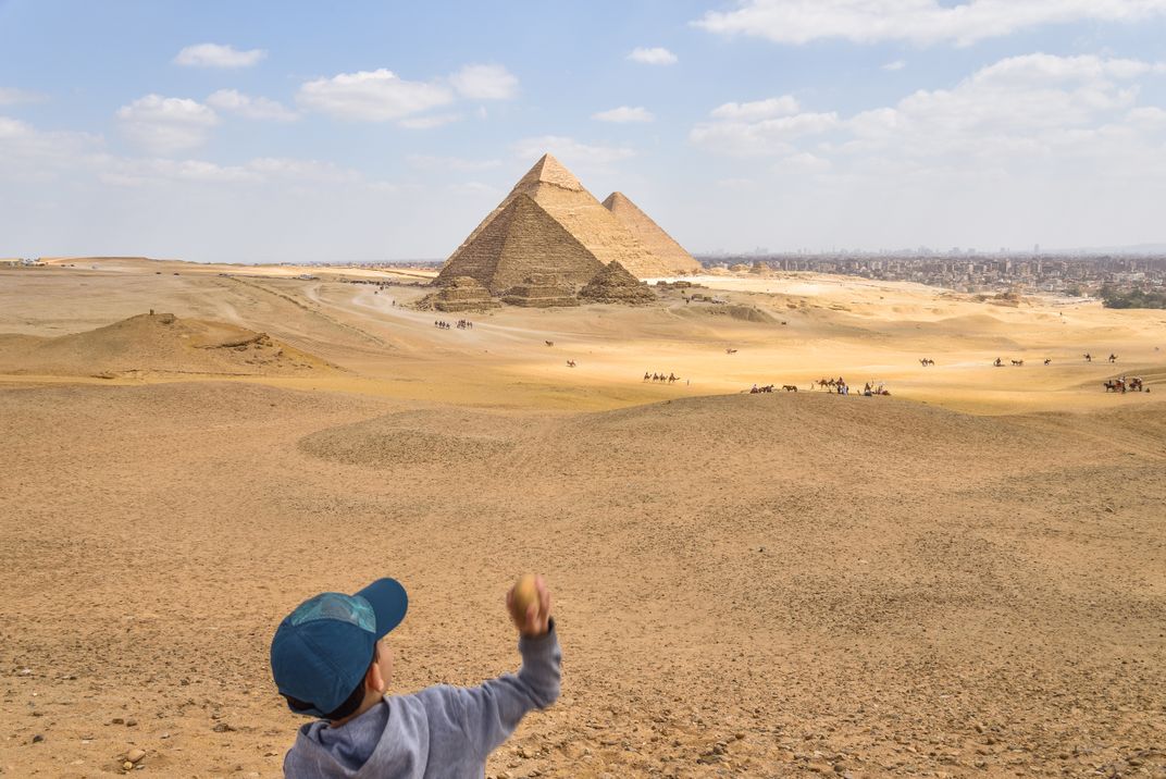There are many fantastic vantage points to capture the pyramids, but to have a little boy end up in your frame, throwing a rock at these marvels of civilization, is something that only happens once in 4,500 years.