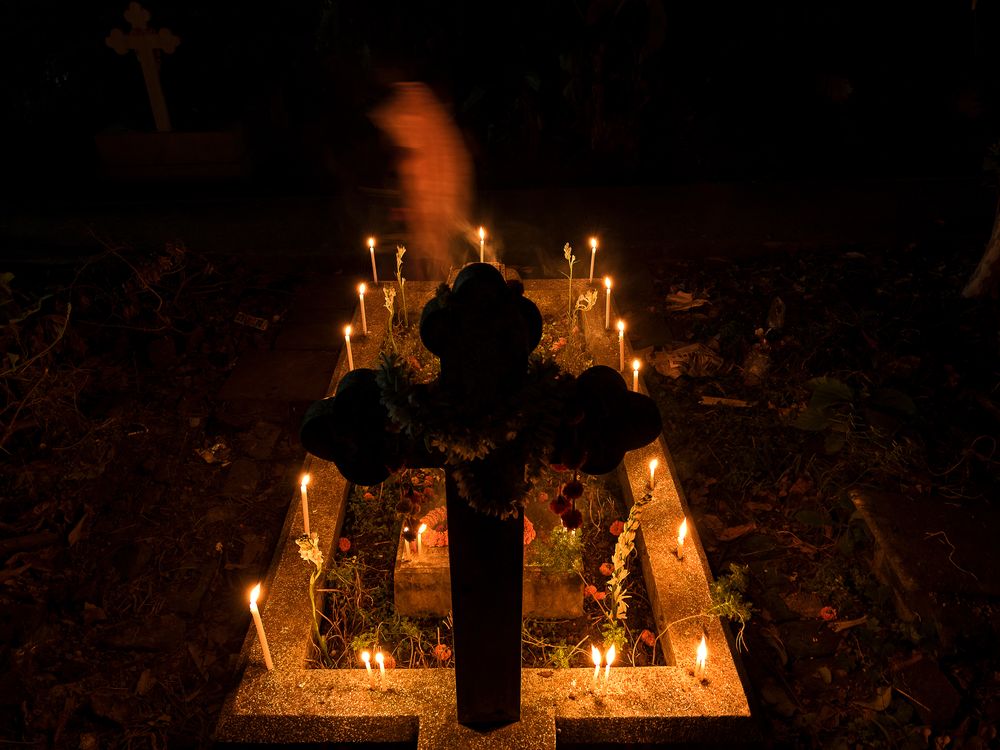A soul's night out: During my first visit to a nearby graveyard on the evening of All souls' day observance I saw the tomb with a lone lady who reached little late for the evening. She was alone decorating and illuminating one of her departed relative's tomb. The candle light, calm ambiance with the lone lady suddenly gave birth to a scary story in my mind and finally it made my night.