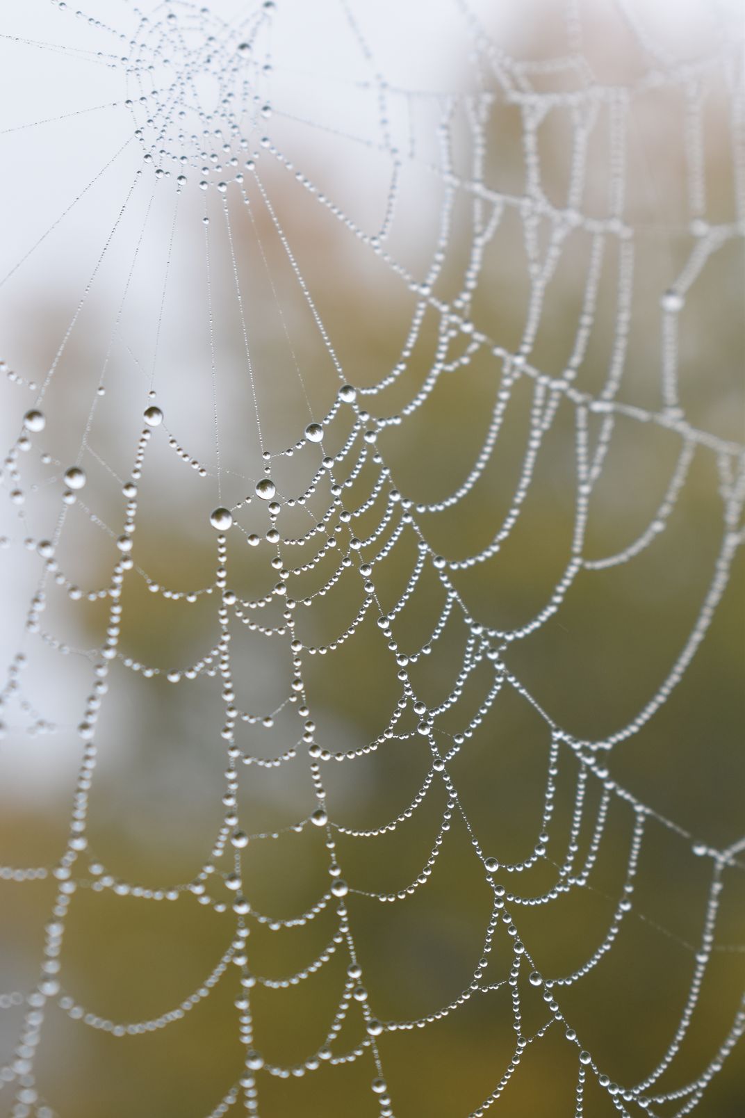 A classic tale of right place right time. Every morning I sit on the porch enjoying my coffee, while letting the dog out. At first I was a little glum as it was overcast and a bit dreary outside. I opened the door as I always do, but this time was greeted by the smell of damp soil and the smell of falling leaves and felt a little more enthusiastic to go outside. I stepped out and there it was, right in front of me: A perfect little spider's web, covered in dew.