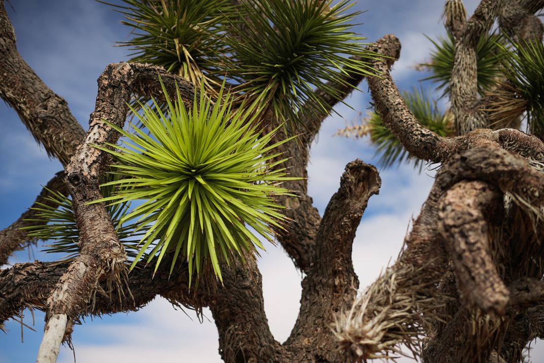 Joshua trees are beautiful and intimidating, shining electric green in front of the ocean blue sky.