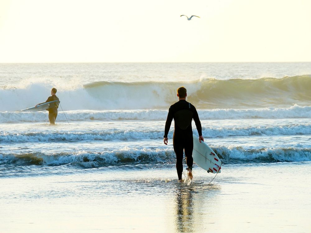 We got to Newport Beach right before golden hour. The waves were a lot bigger than I expected, and there were a lot of surfers on the ocean. I don't know the guy in the photo, but I just snapped a pic.