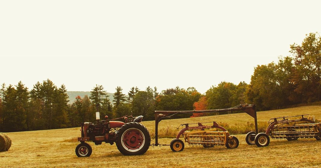 A tractor in a hay field