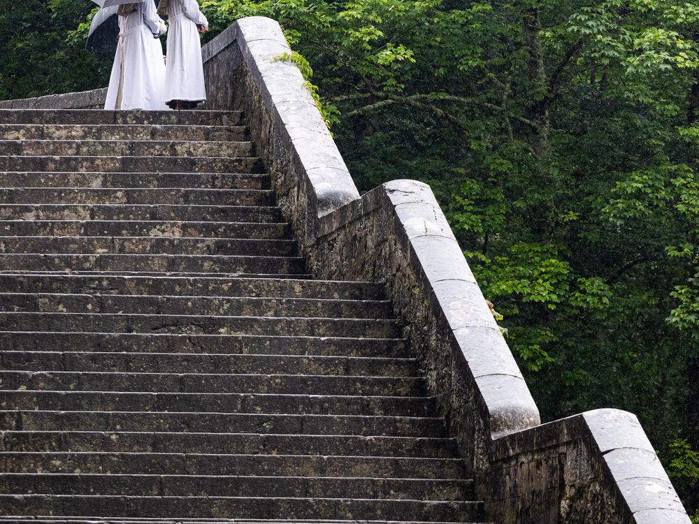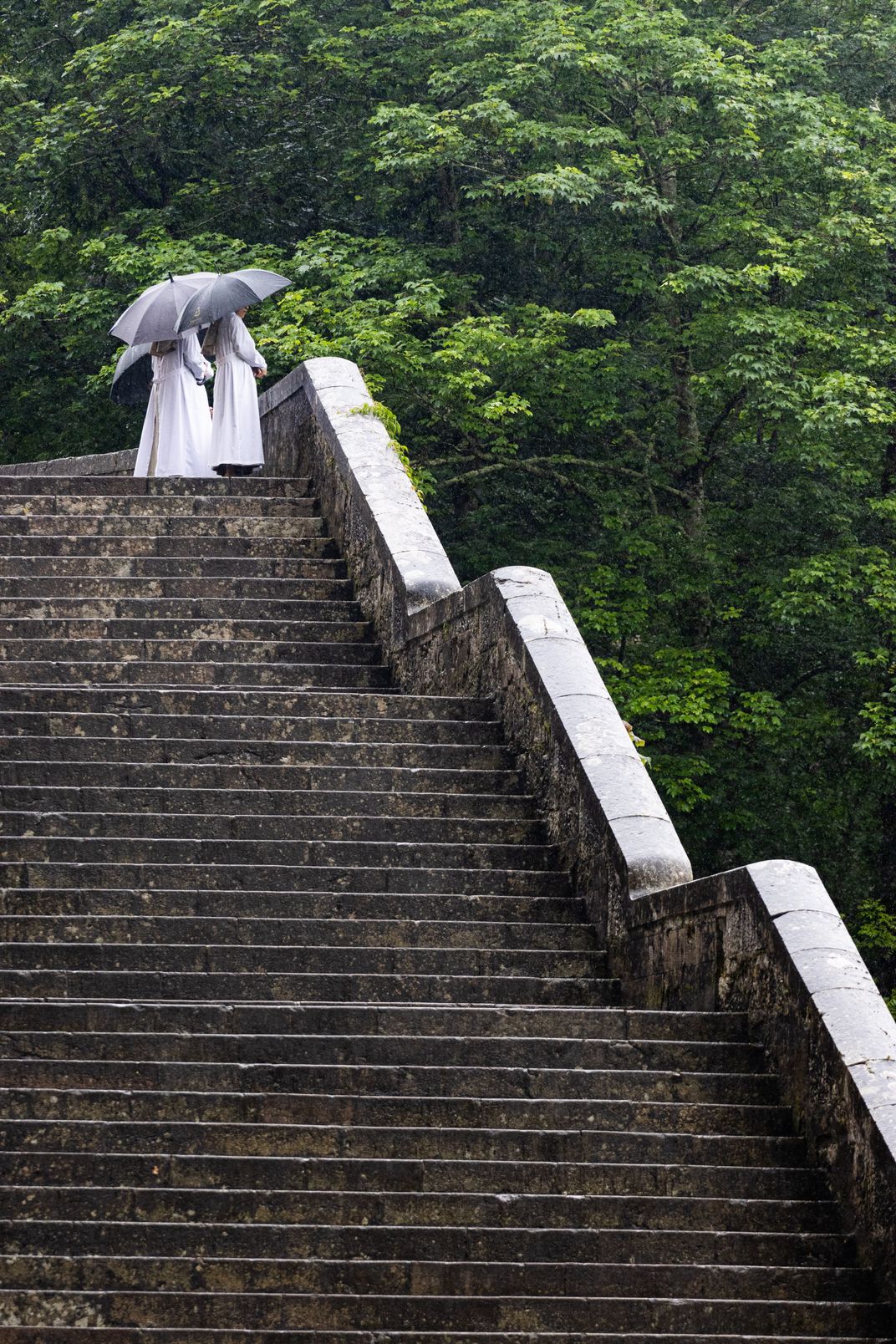 Captured somewhere in Galicia, a trio of nuns ward off the rain.