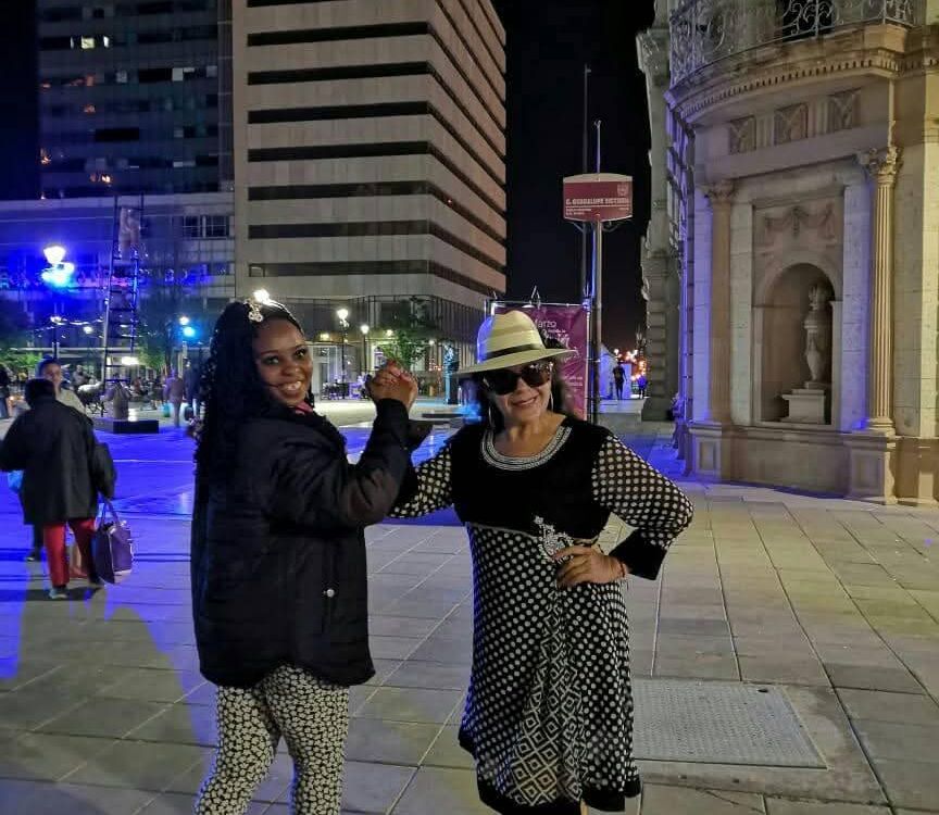 Two females, one from Africa and the other from Mexico, showing mutual respect, strong sisterhood, and a celebratory connection.