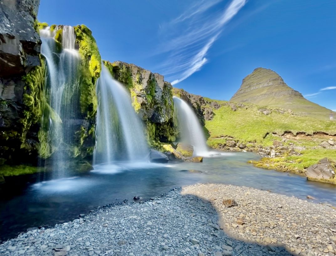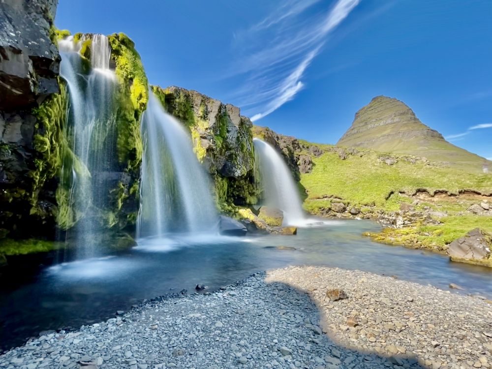 I took a long exposure shot of the waterfall near Kirkjufell, a mountain on the north coast of Iceland's Snæfellsnes peninsula.
