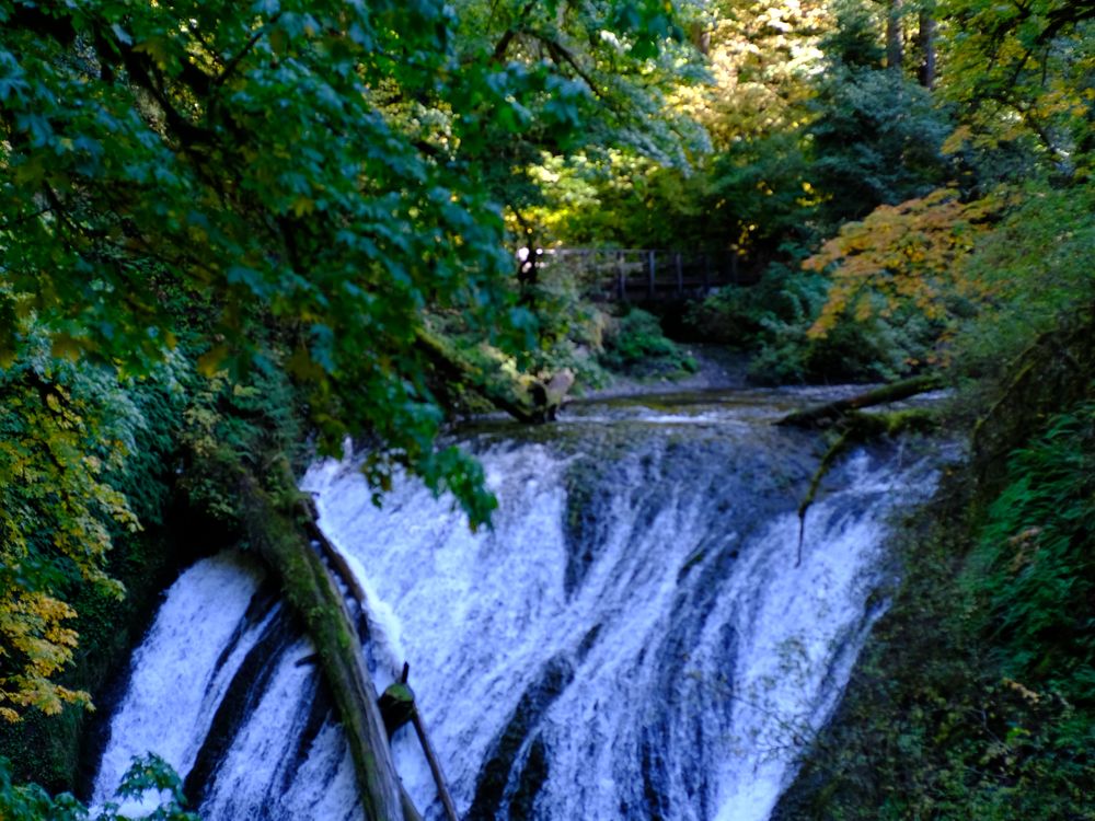 The waterfall makes me feel relief because of a chill vibe in near trails.