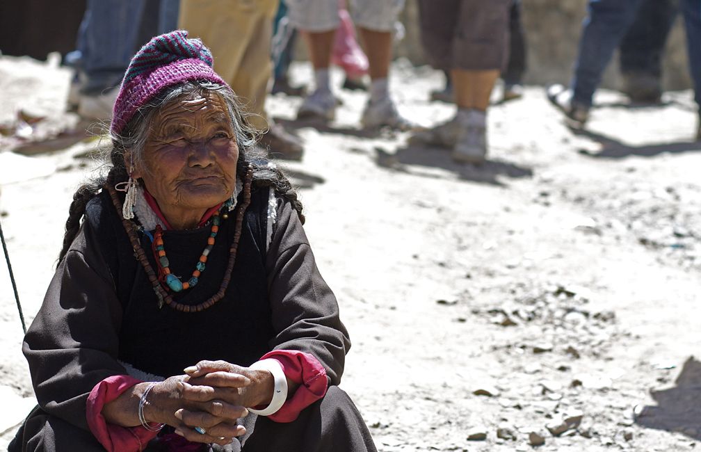 A woman rests after enjoying masked dancing ceremonies at a monastery in Hemis, india.