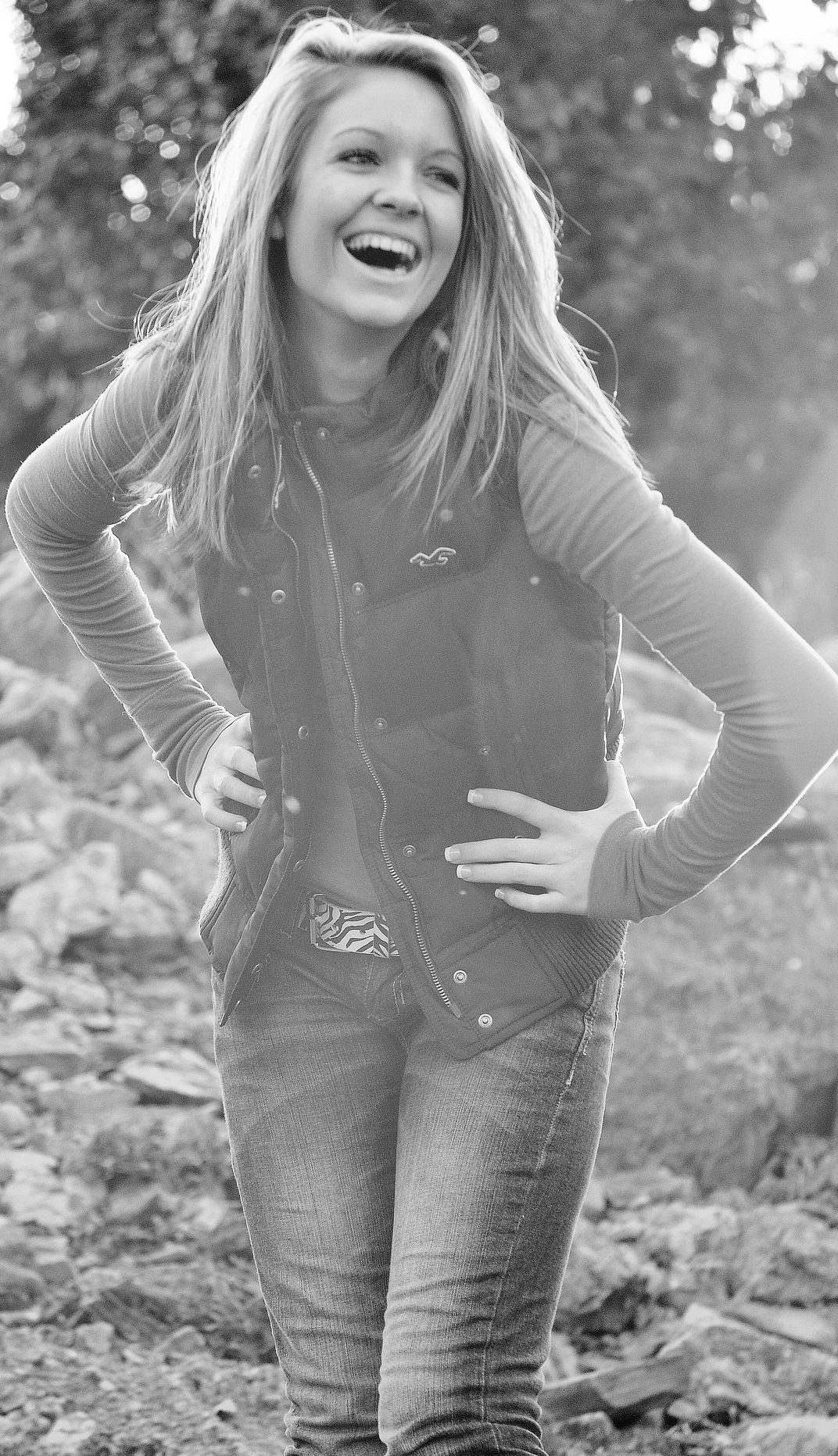 A young lady laughing.
