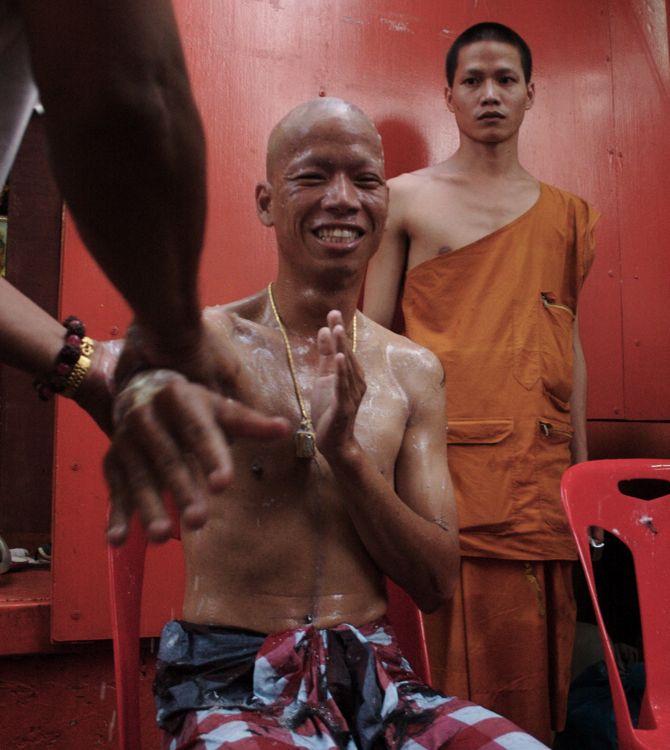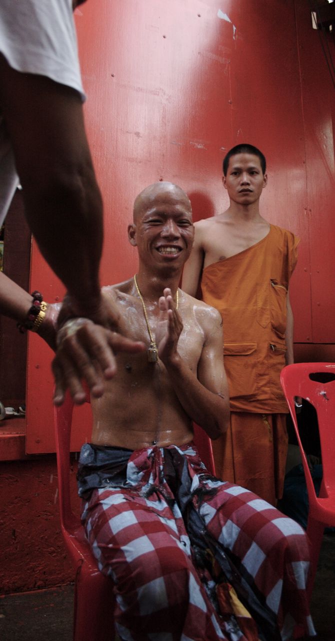 A young Man Becomes a monk. Ceremonies like this happen all the time in Thailand this one on one of the back streets of Bangkok.