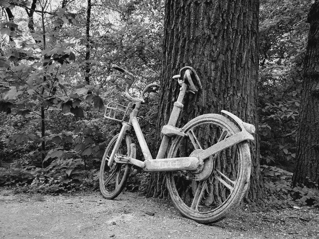 Taken in Treptower Park in Berlin, Germany, this image depicts a long-abandoned bicycle. Having experienced many seasons and weather conditions, the bike is now rusted-over and looks practically at one with nature.
