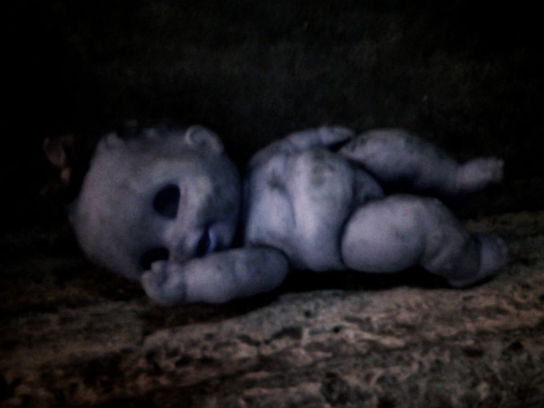 This was a doll that was left near the grocery carts at Walmart one day. My camera phone has a weird way of displaying colors.