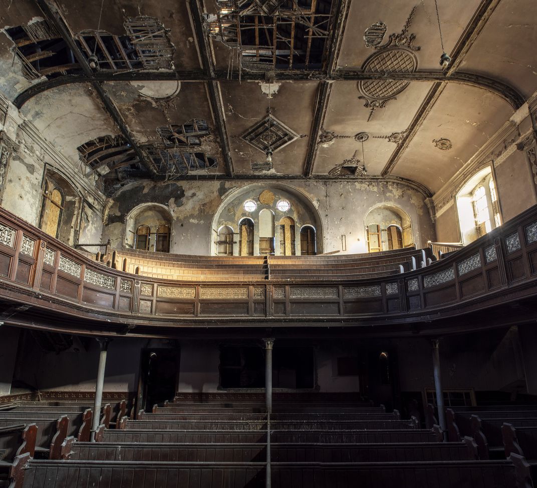 The interior of a stunning derelict chapel in South Wales, UK.