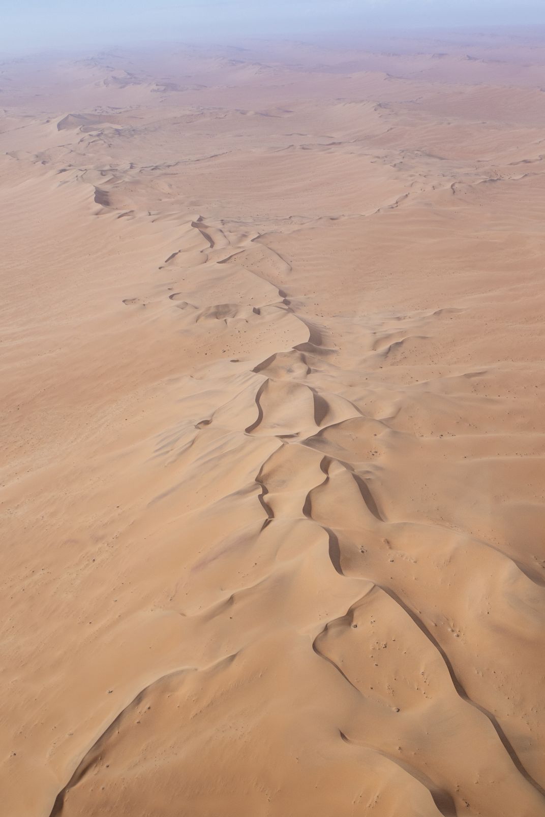 An aerial view near Sossusvlei showing the sand dunes that stretch on for miles.