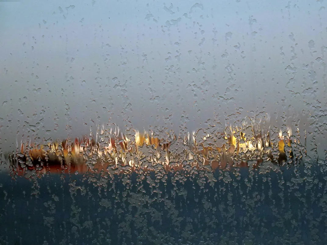 The original photo is a photo of a freighter photographed through a windshield that, after a cold night, was starting to thaw.