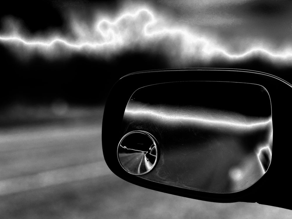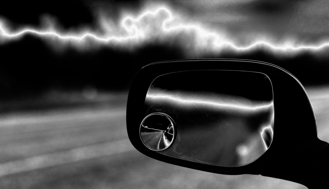 I was traveling on lonesome Texas Highway 158 in Coke County when this phot was taken. I had an impulsive thought of shooting the road backwards using the vehicle's side mirror.