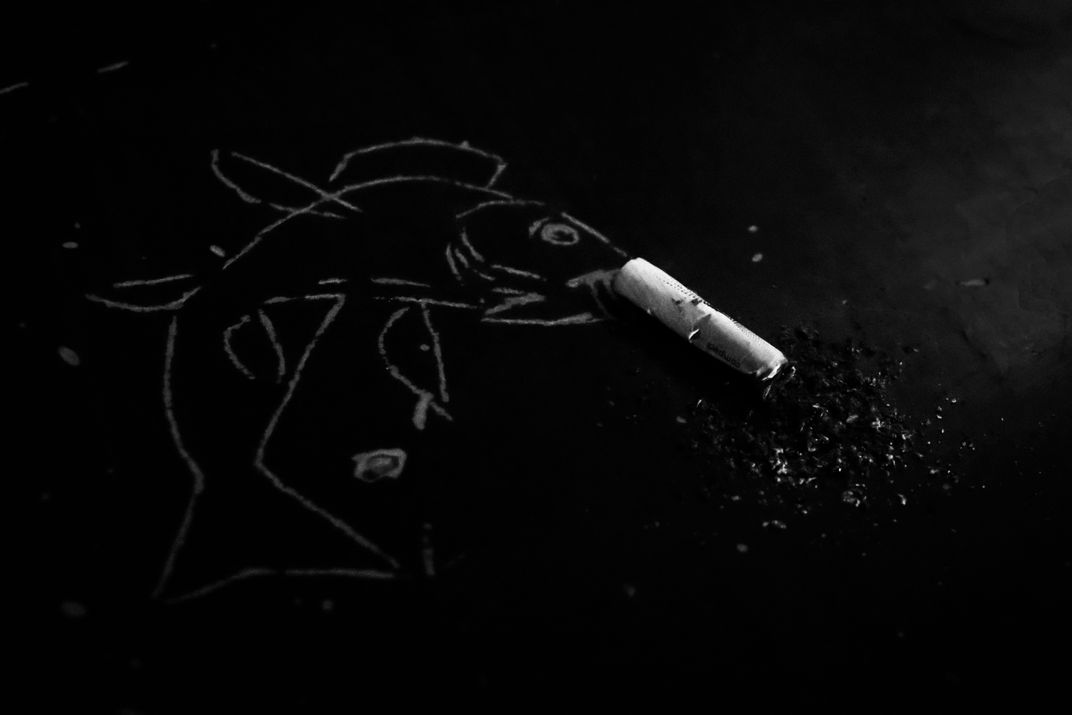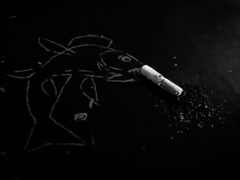 This is a fish-shaped carving on a wooden table in a cafe, where I put a cigarette in its mouth
