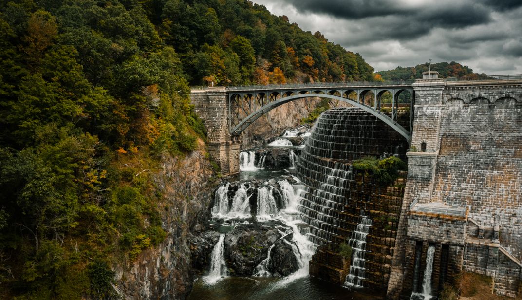 Aerial shot of the man-made Dam in Croton-On-Hudson, NY