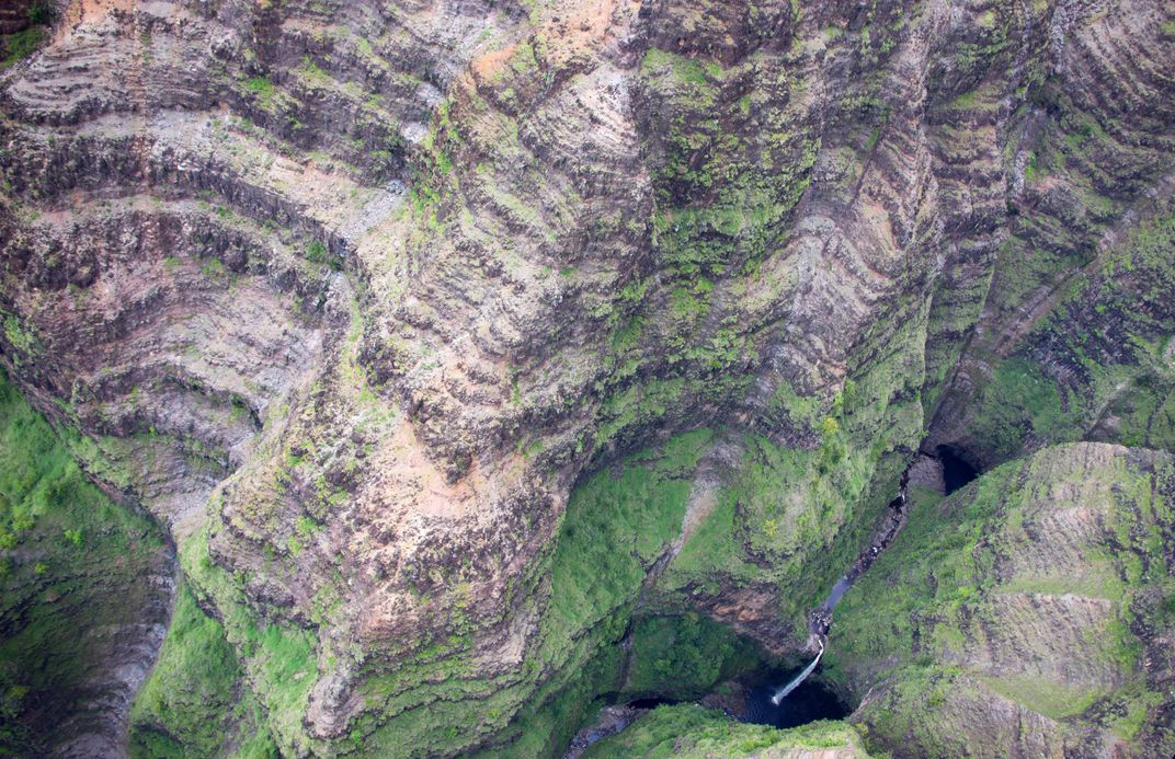 Kauai's Mountain Range and Waterfall below