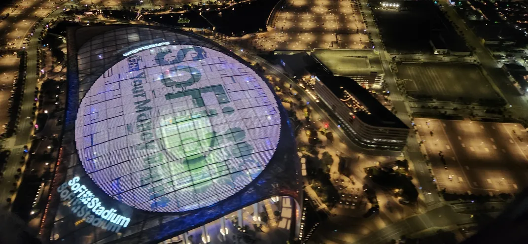 Aerial view of SoFi Stadium at Night