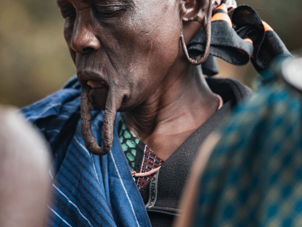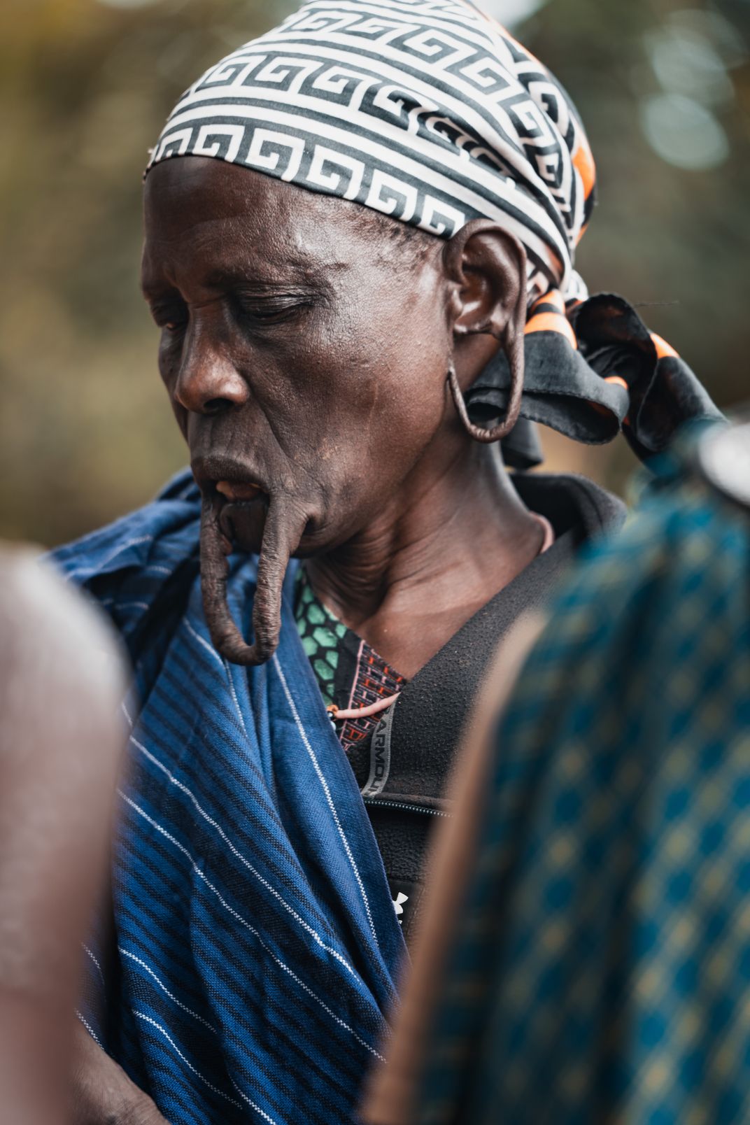 When the ornament is removed, the cost becomes visible. This portrait reflects how generations of cultural expectations have left women carrying the burden on their own bodies, rituals that elevate status yet quietly demand profound personal sacrifice. Thankfully, this type of lip plate has been permanently banned.