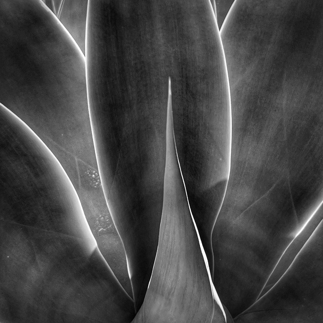A detail of an agave plant found in a shopping center parking lot, Tustin, California.