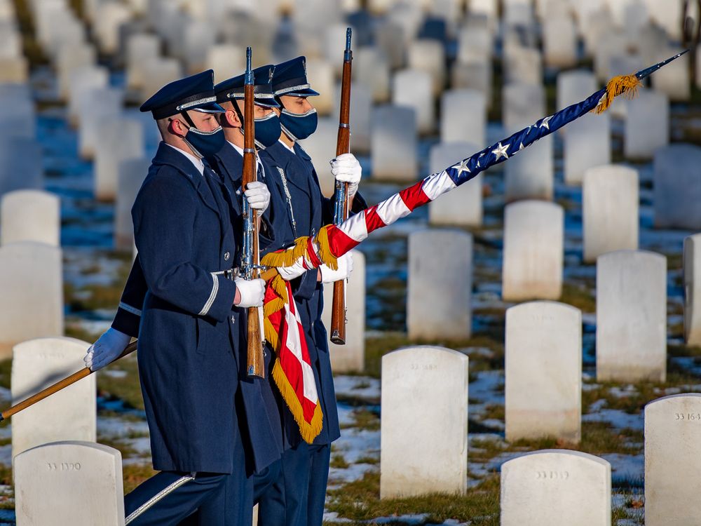 I was walking through Arlington National Cemetery in February 2021 and saw a funeral service for a retired AF officer. I took this photo as a portion of the honor guard was leaving at the end of the service.