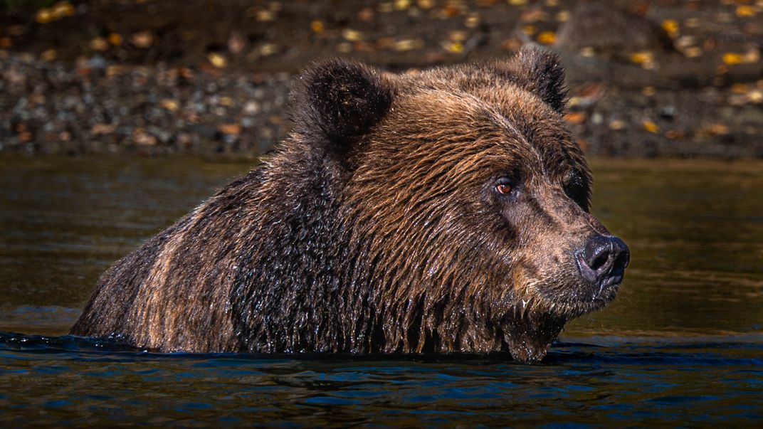 A calm brown bear gazes toward the camera in Lake Clark National Park, its fur catching soft Alaskan light and revealing the quiet strength and wild beauty of the northern wilderness.