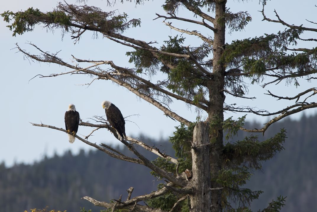 Eagles sitting in a tree in Alaska.