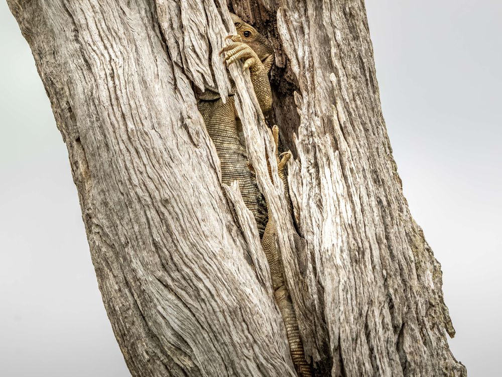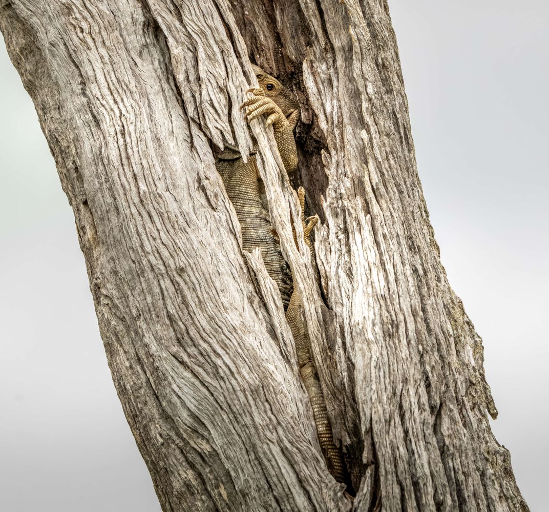 A Lizard in his sleeping dead tree. Taken on a morning game drive.