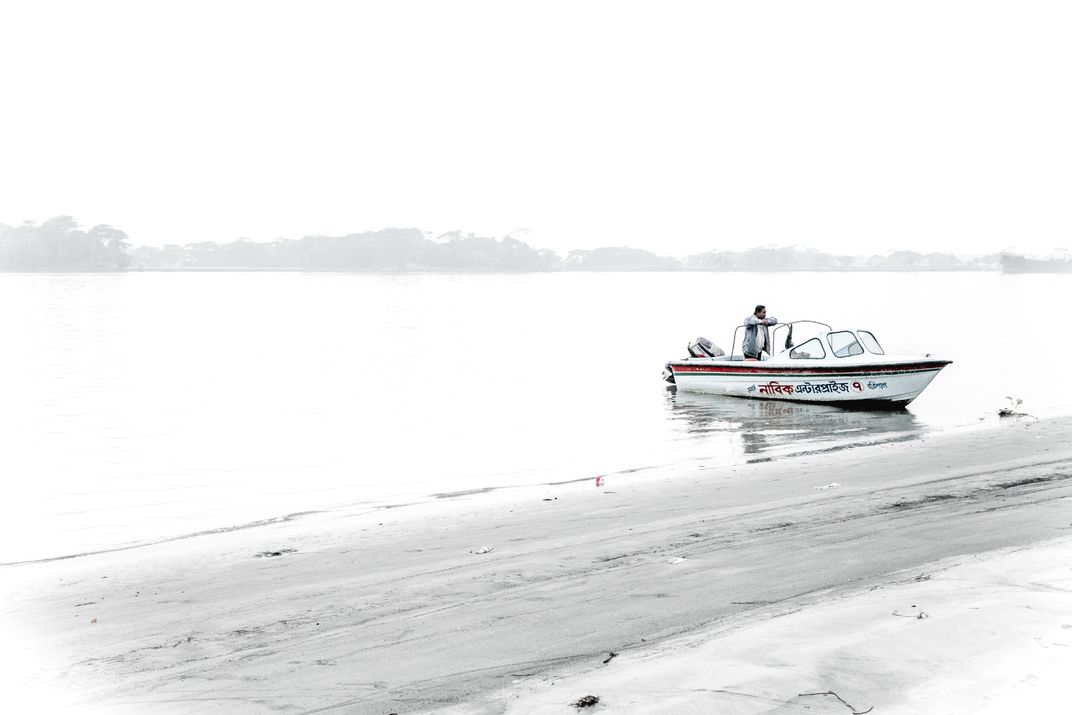 The lone boatman waiting for passengers on the bank of Kirtonkhola river, Bangladesh.