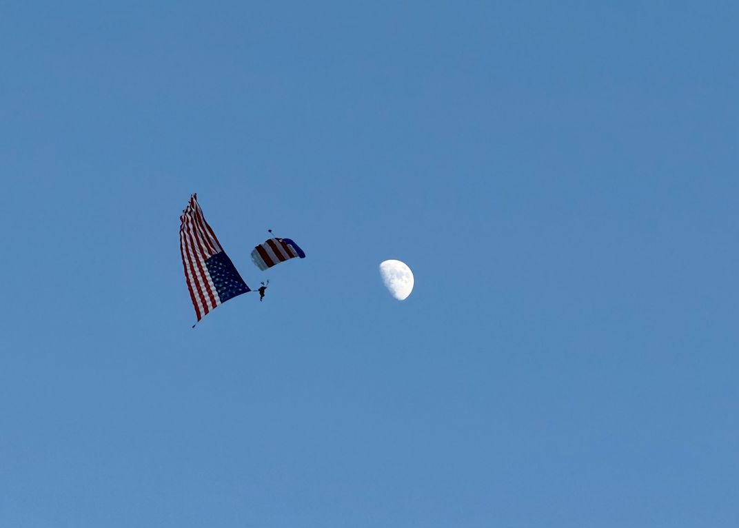 Skydiver in airshow near the Ozark Mountains of Missouri on the Fourth of July.