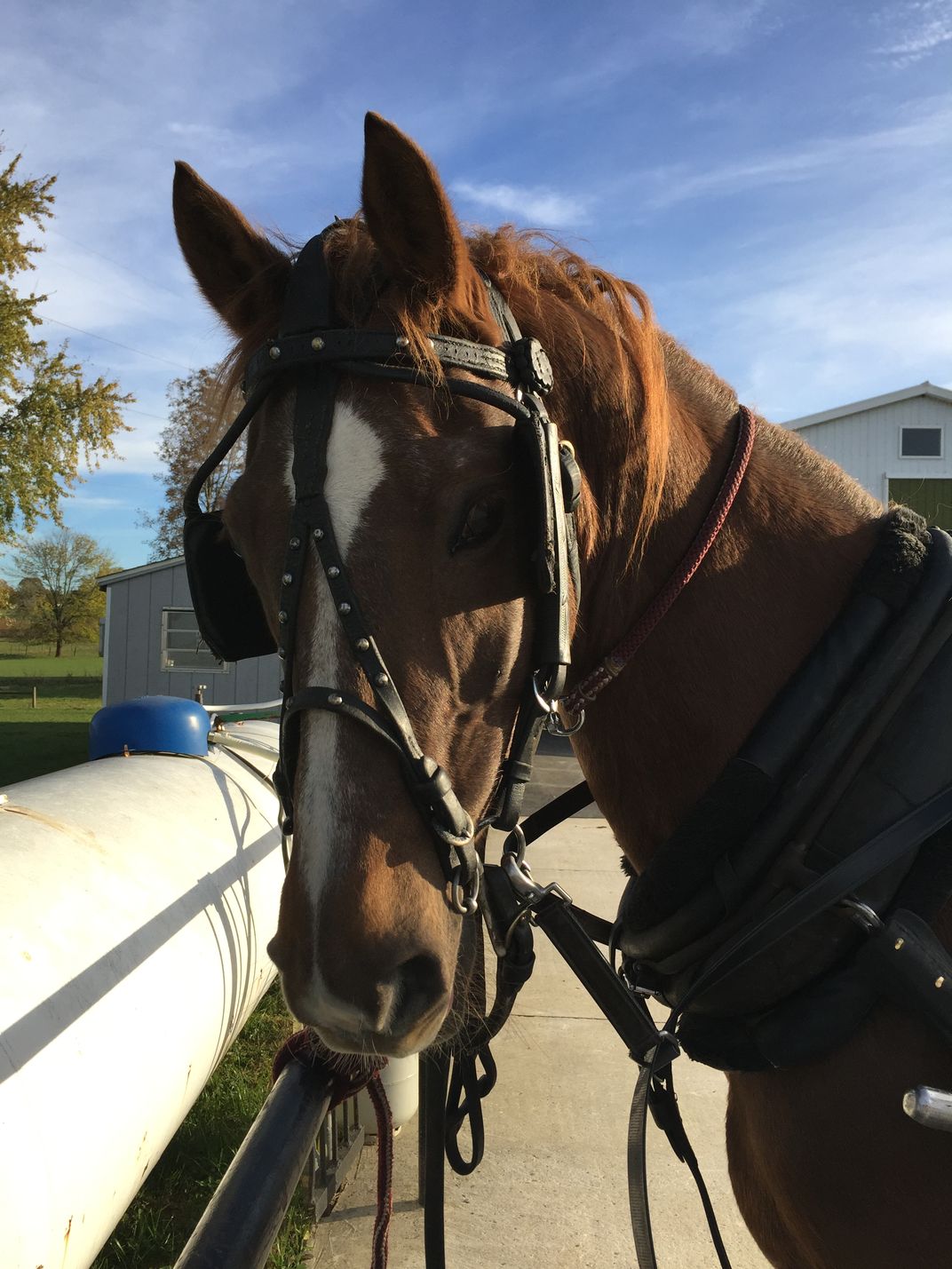 I was born in Lancaster, PA and just returned from a trip there. This horse & buggy was parked outside a natural food store. I made sure the buggy was empty before I started taking pictures with my iPhone. I even petted him. He was so soft!
