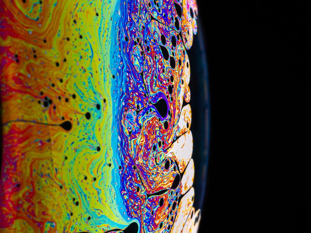 This is a soap bubble flipped on its side to look like a psychadelic iris.