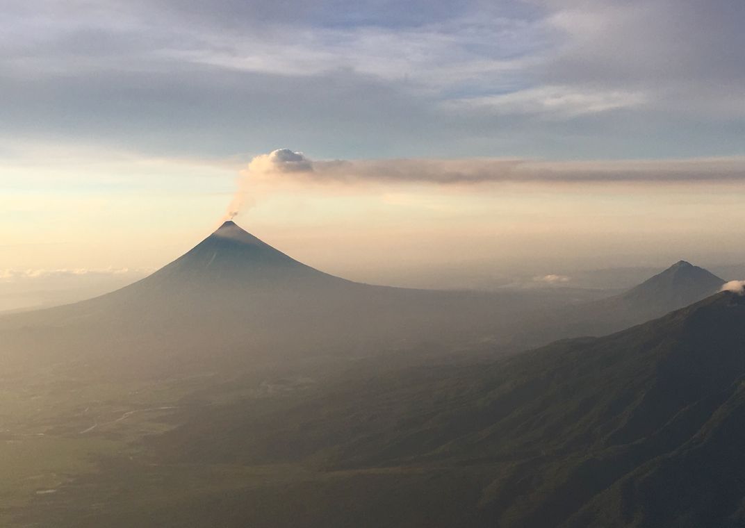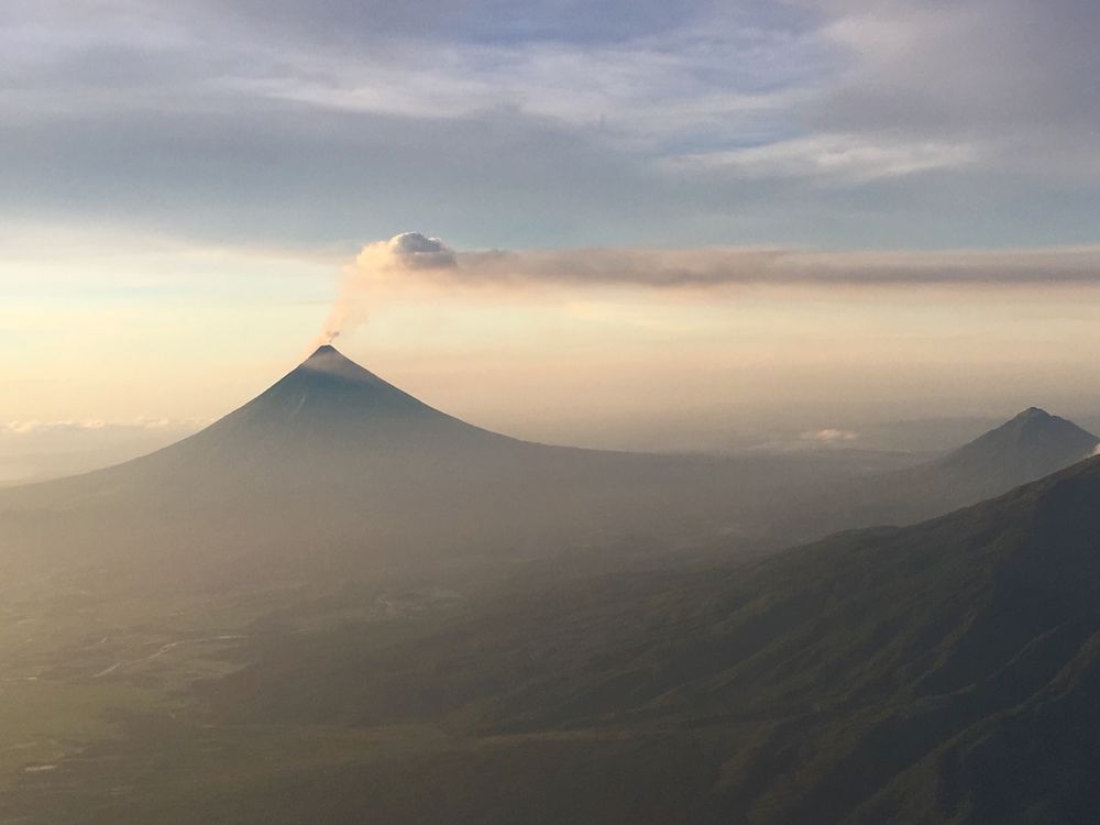 The photo was take just a month after the eruption of Mayon Volcano in Legaspi, Albay, Philippines. From an aerial view, it is spewing black and greyish ashes from its mouth.